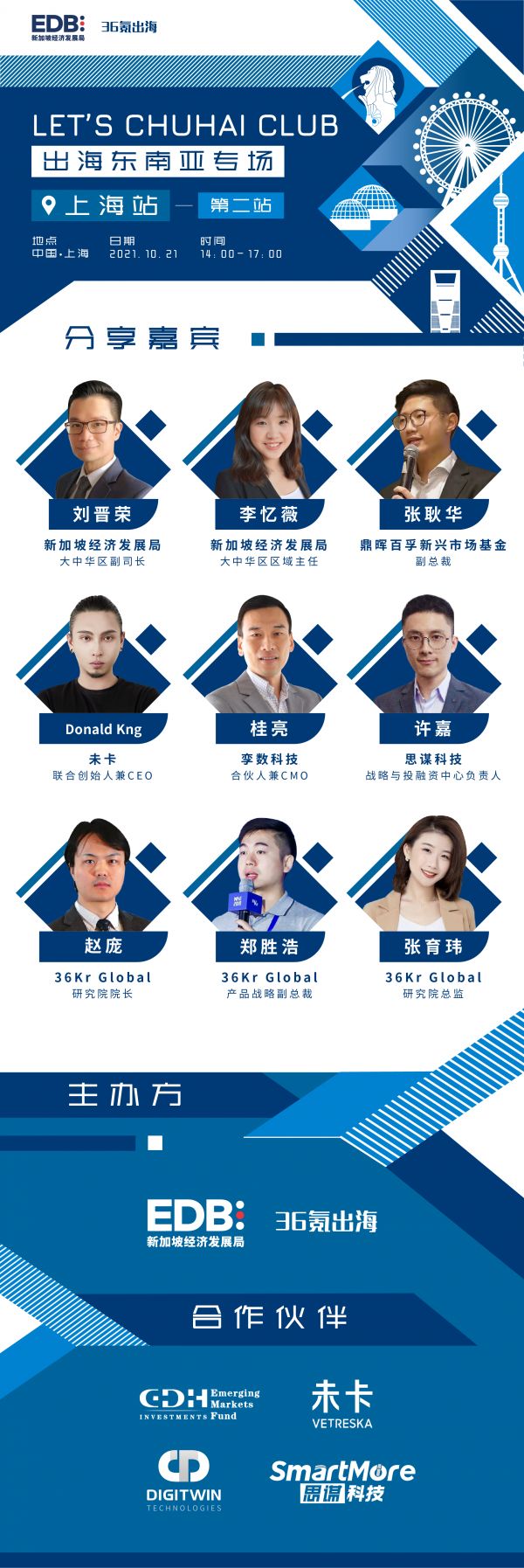 由新加坡经济发展局(EDB)与36氪出海联合主办的“LET'S CHUHAI CLUB-出海东南亚系列沙龙” 第二站,我们于10月21日将来到中国消费品牌创新聚集地,工业互联网智能制造实践先锋 - 上海。深入长三角当地出海圈,带来一场真正有价值的行业交流。