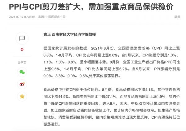 咱们来解读一下这两则新闻,PPI和CPI的剪刀差扩大:原材料上涨,生产商品成本上涨,但是商品售价不敢大幅提高,因为疫情等外在因素消费力还没有明显增长,这就导致了厂家成本提高但售价不变,利润就要大幅缩水,甚至亏本。