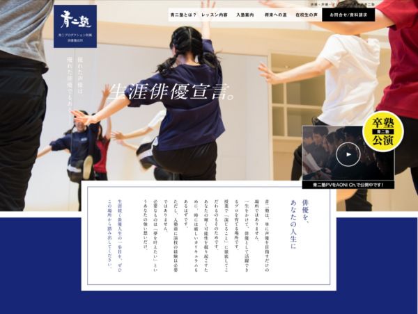 青二塾在日本有两个分校,分别设置于东京和大阪。东京校的授课时间安排在周一至周五,一天有两节课,一节课两小时,主要教授演技、解说独白、日本舞、发声技巧、舞蹈等内容,培训时间为一年,学费大约1,100,000日元(约合人民币64,219元)。而在大阪校,授课时间则安排在周六和周日,同样是一天两节课,但一节课两个半小时,培训时间为两年。主要培训内容有发音、朗读、演技、音乐、舞蹈等,价格大约为1,158,720日元(约合人民币67,467元)。和东京校不同的是,由于大阪校的学生中使用关西方言的人数较多,大阪校的课程中特意增加了正音课程。