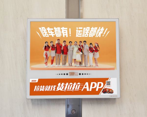 货拉拉大手笔投放品牌广告,旨在强化“拉货=货拉拉”的认知。在互联网媒体精准推送、在百座城市电梯重复播放有极高辨识度的内容,就可以强势影响用户与司机的心智,让人们有拉货需求时第一时间想到“货拉拉”。