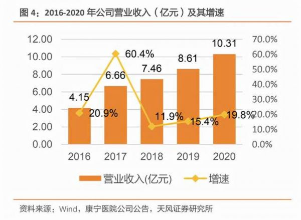其2015年递交的港股招股书曾经提及,中国精神卫生医疗市场发展潜力巨大,国内目前有1.8亿人具有不同程度的精神心理隐患,其中8000万人较为严重。天风证券报告也指出,中国精神病医院总收入处于逐年增加状态。2015-2019 年,中国精神病医院总收入由 377 亿元增长至 662 亿元,年复合增长率为15%。这些趋势都助推了康宁医院营收的快速增长。