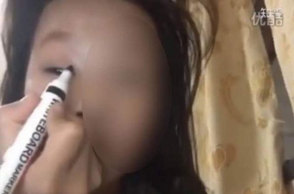 用马克笔画眼线的“小美老师” 来源 / 视频截图