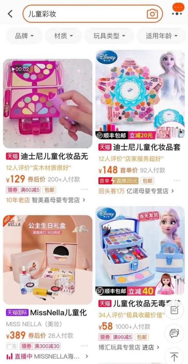 琳琅满目的儿童彩妆产品 来源 / 淘宝截图