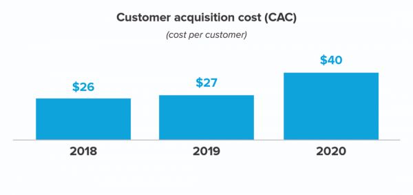 由此便涉及到Warby Parker的获客成本。2018年至2020年,Warby Parker 的获客成本分别为26美元、27美元和40美元,疫情期间获客成本大幅升高。