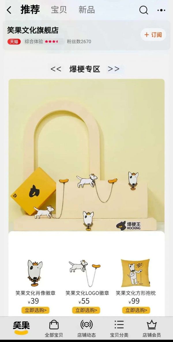 前不久,笑果文化又在天猫上成立官方旗舰店,售卖与热门脱口秀内容有关的周边文化产品。