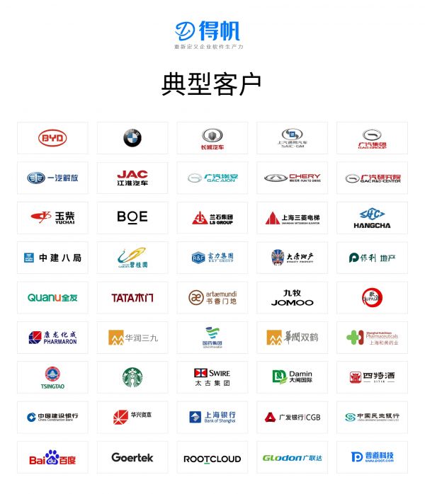 “得帆的客户以大型企业为主,其有比亚迪、上汽通用、江淮汽车这类大型整车企业,还有像三菱电梯、玉柴集团这种大型制造企业,还有富力集团、碧桂园等地产龙头企业。”