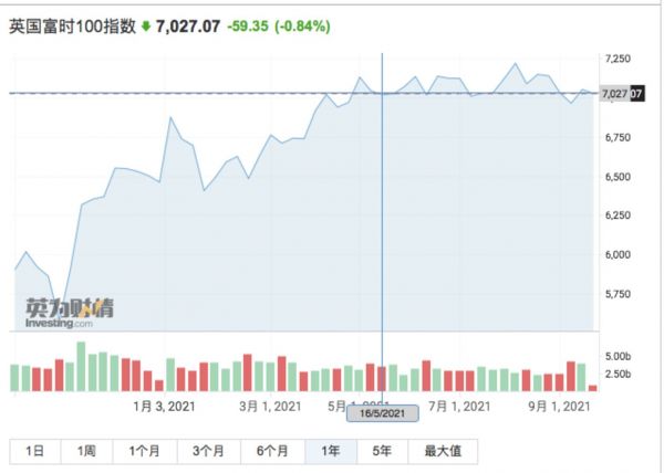 2021年5月14号与10月1日相比,英国富时100指数均在同一水平线,也就是说,在过去几个月时间,英国资本市场总市值已经逐渐达到顶峰,增值空间是已经极为有限,且随着全球通胀预期的增加,货币政策紧缩预期加强,资本市场进入调整期也已经是大概率事件。