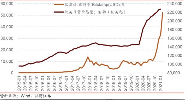 如若是资产,比特币价值就要受到全球流动性的影响,招商证券曾对此有较为详细的分析,我们引入下图