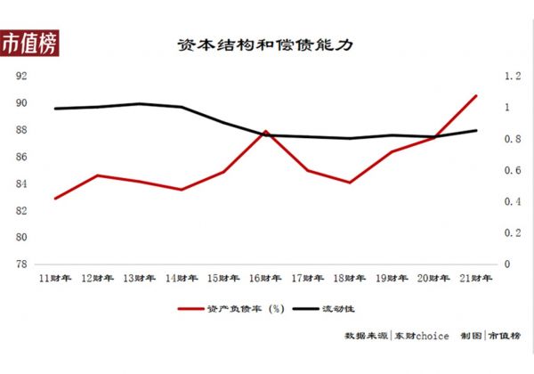 把时间拉长来看,联想集团的趋势是资产负债率变高,流动性变差。