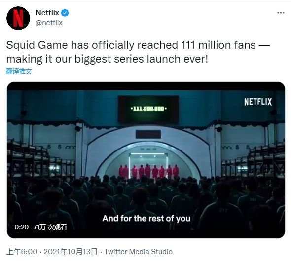 不出意外的话,今年全球剧集角逐战已经选出了最热门的作品——Netflix 的韩语自制剧《鱿鱼游戏》在开播半个月内成为了该平台史上观看人数最多的非英语剧,在开播不到四周正式成为其史上观看人数最多的剧集。在 Netflix 所覆盖的 190 多个国家和地区,这部韩语剧毫无悬念地登顶。
