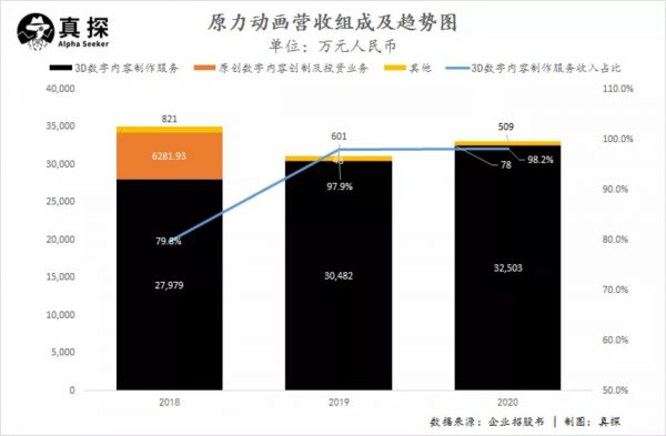 尤其是原力动画,其在《妈妈咪鸭》失败后,基本叫停了原创数字内容业务,将重心又转回到传统的承制服务上,营收结构的转变是推动其毛利、净利大幅度优化的重要原因。2019年到2020年,3D数字内容制作服务收入占比分别为97.9%、98.2%。