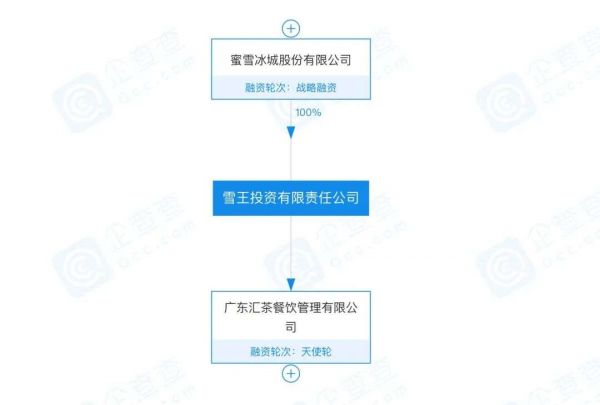 9月份,有消息称,蜜雪冰城成立雪王投资公司。1个月后,首笔投资也对外公布了。 企查查显示,雪王投资有限责任公司新增对外投资,成为广东汇茶餐饮管理有限公司的股东。后者公司注册资本由500万元人民币增加至617.28万元人民币,增幅为23.46%。