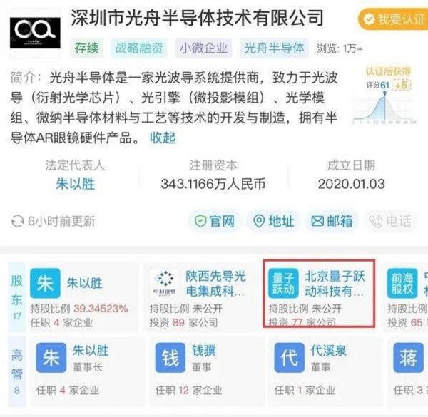 本周,深圳市光舟半导体技术有限公司发生工商变更,新增字节跳动关联公司北京量子跃动科技有限公司为股东,持股1.87%。同时公司注册资本由299.72万人民币增至约343.12万人民币,增幅约14.48%。
