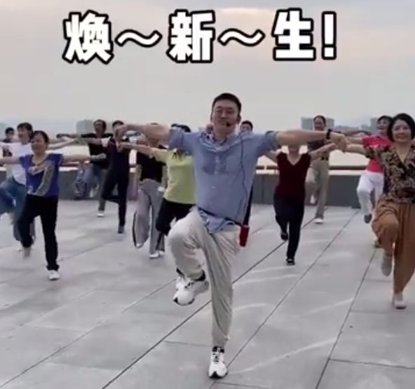 金鸡独立、连续踏步、揉捏手部、对手指训练……杭州之江大桥下,伴随着“谁说留不住岁月,神采奕奕焕新生“的BGM, 这群老年人跳的广场舞称不上多新潮,但领舞的人倒是很不寻常——一位30岁的男博士。