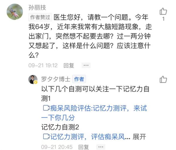 不过,我的主攻方向还是老年痴呆(从研究生阶段就开始从事老年痴呆的影像学诊断),(在医院问诊时)总会有一些家属咨询我相关问题,比如“我父亲得了老年痴呆,我患病的风险有多大”。有一天,我接连遇到三四个人问同样的问题,就想着干脆回归到老本行,做专门的老年痴呆科普博主,这一做就是2年。