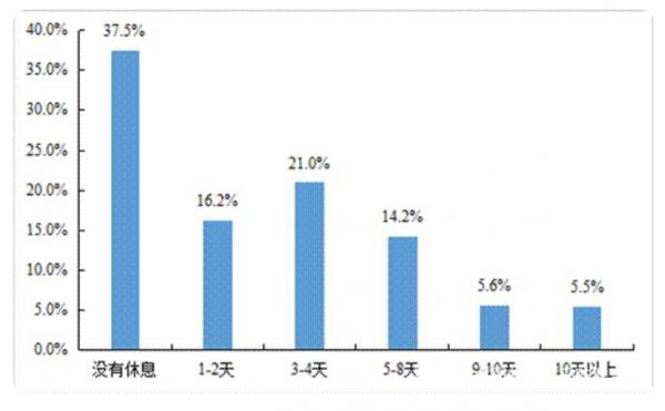 《2021年货车司机从业状况调查报告》显示,有37.5%的货车司机是完全没有休息时间的,16.2%的货车司机平均每月有1-2天休息时间,每月能休息9天以上的只占11.1%。