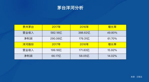 一个简单案例:从数据就可看出茅台2017的增长能力要高于洋河。