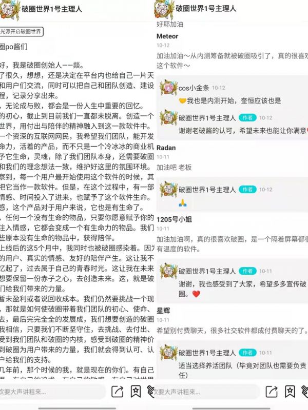 据创始人王燚燚介绍,破圈创立于2020年10月份,从团队搭建到产品上线用时将近一周年,以保证有充足的时间进行产品开发打磨与公司企业文化和管理体系梳理。