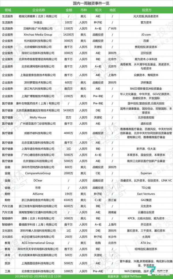 ✔. 本周钛媒体Pro全球创投数据库TMTBase总计收录国内投融资事件有39起。