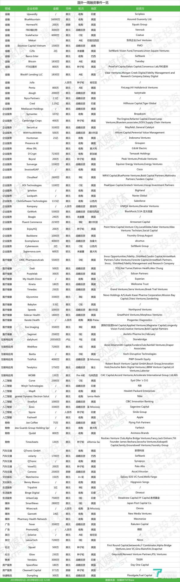 国外一周融资事件一览
