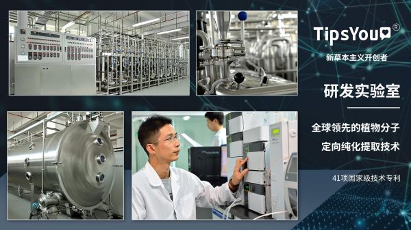 在研发和技术方面,TipsYou研发实验室选择和中科分子研究院等机构合作,并采用其独创“恒低温物理细胞破壁技术”进行中草药草本元素的全图谱提取,将中药材中全部有效成分1:1还原提取,确保了产品中的中药材成分可以达到分子级的一致性与有效性。在此基础上,TipsYou遵循汉方“药食同源”的药效原理,对产品的配方进行优化和创新,新配方中膳食补充与养生调理并重,将中华经典名方“老方新用”。