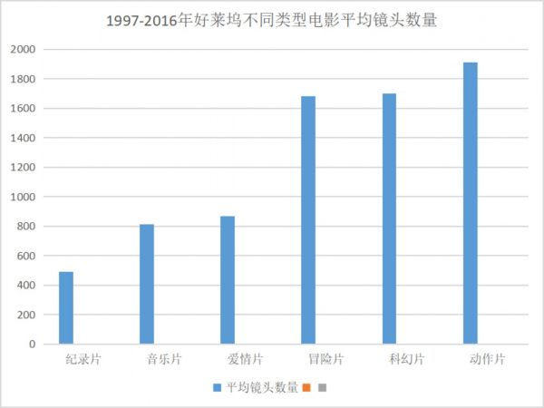 此前有学者统计过1935年到2016年的160部英语电影中的镜头长度,发现在30-40年代好莱坞电影的平均镜头长度在10秒左右,而这一数值在2000年后降到了4秒。英国学者史蒂芬·弗朗斯也做过类似的研究,在对1997年至2016年内发行的好莱坞电影进行统计后,他指出,就电影院上映的电影来说,平均镜头数量大约是1000-1500个。这意味着在一部90分钟的电影里,平均每5秒就会切换一次镜头。