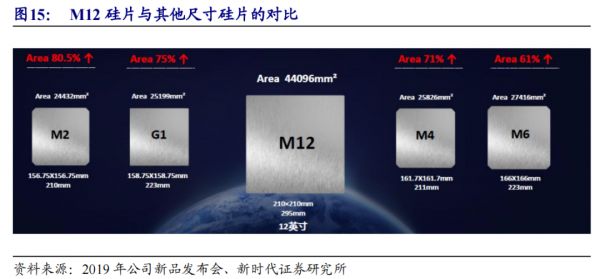 从产品性能上看,M12硅片全方面强于传统硅片,与当时主流的G1硅片相比,效率提升近75%。根据中环的测算,M12电池片的成本可降低7.9分/瓦,组件成本可降低12.6分/瓦。除产业链配套暂未跟上外,暂无明显缺点。