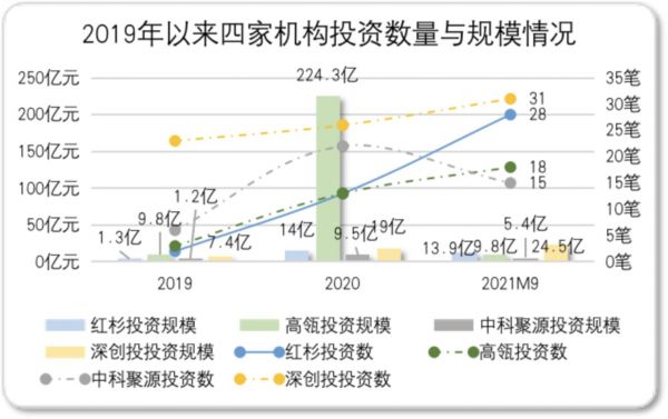 上述人士提到的中科创星在2019、2020、2021年9月分别参投24、24、30家,大多集中于早期融资。