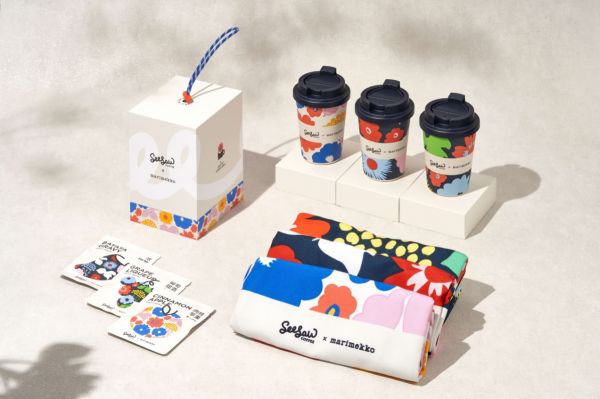 这是一次比较特殊的灵感碰撞。Marimekko是芬兰国宝级设计师品牌,品牌创立至今已经有七十余年历史,相比之下,Seesaw就显得年轻太多,是一家2012年成立于上海的精品咖啡品牌。两家品牌不同的历史背景,是联名之前无法忽视的挑战,而最终成功让他们成为“忘年交”的重要原因可能在于,二者同样对创造性的设计上倾注了大量心血。