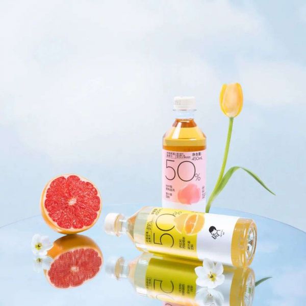 不同于市面上大多数瓶装果味茶/果汁茶饮料,喜茶果汁茶果汁含量达到行业开创性的50%,是国标的10倍,“茶”的部分则选用喜茶经典茶底萃取茶汤。产品配方的升级对果汁压榨技术、茶汤萃取工艺都提出了更高的要求。最终的“一半果汁一半茶”不仅契合健康理念,在口感、风味上也达到了一个新高度。
