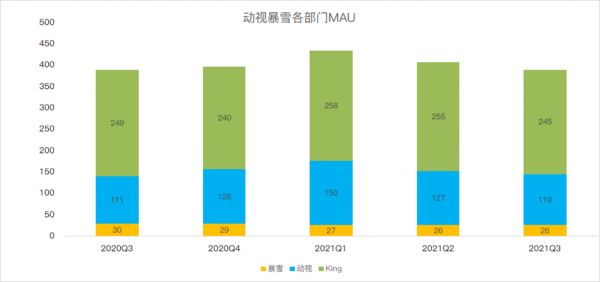 三季度,随着全球各地区相继重新开放,公司月活跃用户数和用户时间投入与去年同期持平。如果说这是去年疫情带来的高基数效应,但回顾过去三年,2018年动视暴雪MAU高达3.45亿,到2021年第三季度,暴雪MAU为3.9亿,三年仅增长了13%,年均复合增长率仅为个位数,暴雪在这三年间竟流失了1100万活跃用户。