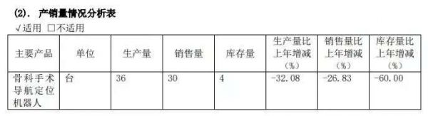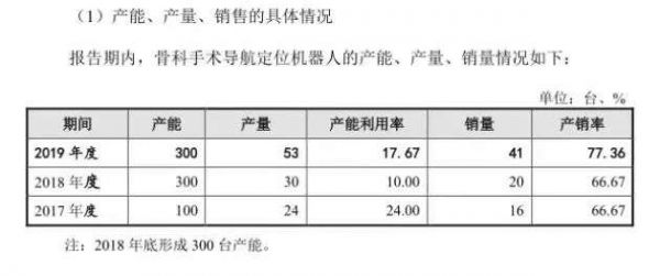 这款天玑机器人主要面向医院销售,销量虽不高,但逐年有上升。2018年-2020年分别销售了20、41、30台,产销率平均在70%左右。