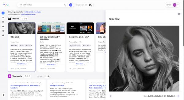 You.com为用户提供了一种全新的搜索体验。首先,它并不像传统的搜索引擎那样使用垂直链接列表,而是将页面设计为按照信息来源排列的横向网格。其结果页面可以链接到不同的应用程序,如Twitter、YouTube、Yelp等。你只需要从左到右滚动目录,就可以看到某个特定应用或类别的结果。这种设计方式鼓励用户比较多种信息来源和进入信任的来源。