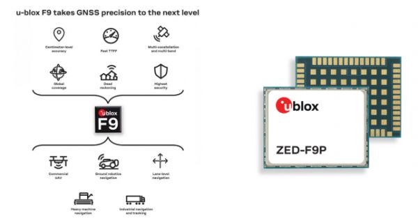 u-blox在2018年推出了F9高精度GNSS技术平台,旨在为大众市场提供低功耗、高精度的GNSS接收器。据了解,u-blox F9高精度GNSS技术平台能够同时接收全球四个GNSS系统(北斗、GPS、GLONASS和伽利略)的信号,可提供厘米级定位精度和车道导航精度。