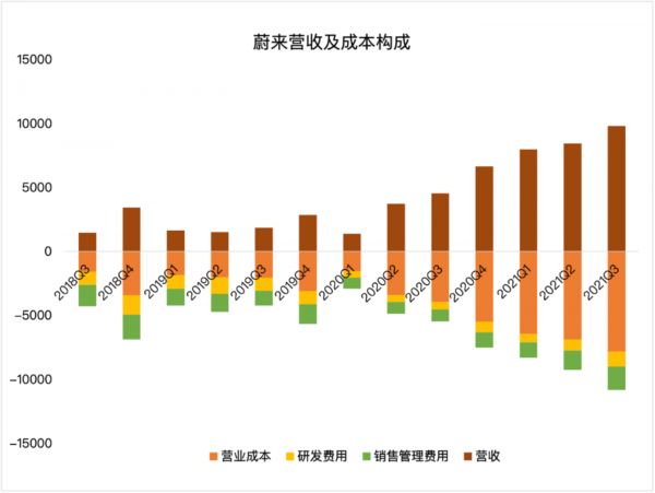 这一数据并不令人意外。三季度因芯片短缺和原材料价格飙升,加上蔚来计划明年推出三款车型,折旧和摊销加速,上述原因均可能会导致蔚来近期利润率下滑,影响毛利。另外,随着与小鹏、理想等对手的竞争加剧,销售压力可想而知,营销成本在未来一段时间只会增加。加之蔚来在2021年并没有计划推出新车型,研发成本在本季度也会增加,净利只会难上加难。