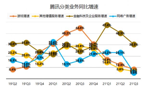 显然不是。三季度在各种市场环境巨变的情况下,教育等行业出现了集聚性萎缩,包括腾讯在内的以前的广告主一夜之间没了。这部分的打击早就已经在投资者的预判中,并体现在了股价里。反倒是社交及其他广告收入还增长了7%,说明此前腾讯经营的微信小程序及微信公众号的广告收入在不断增长。