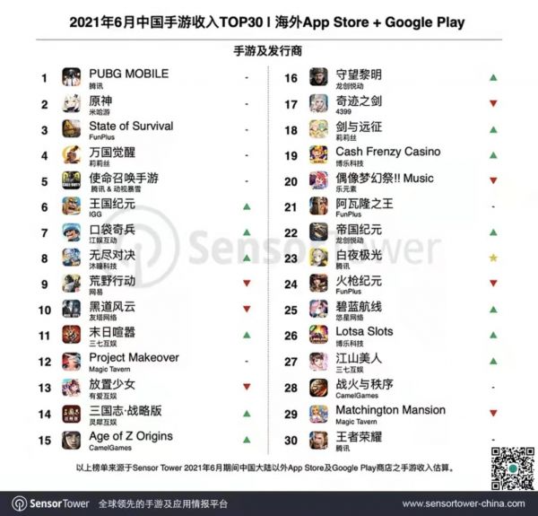 今年6月份,《白夜极光》(Alchemy Stars)陆续登陆日韩、欧美、东南亚等多个海外市场。根据Sensor Tower统计,当月该作营收超过1700万美元,空降中国出海手游收入排行榜第23名。