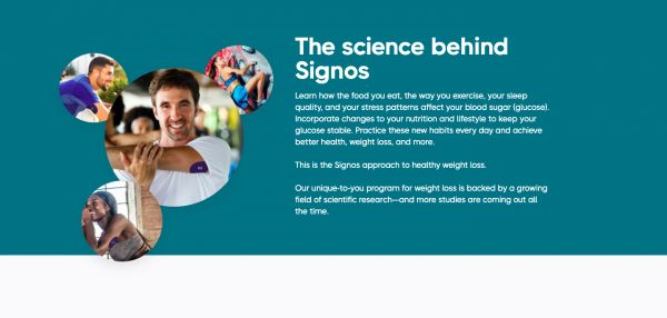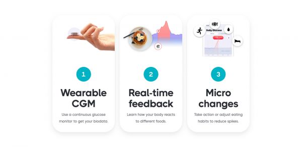 除了上述硬件,Signos还创建了一个人工智能增强的应用程序平台。用户在上面记录他们的饮食,使平台能够形成用户身体对特定食物反应的数据。之后,Signos利用这些数据提供个性化的营养建议,包括哪些食物最适合每个用户,以及何时进食和运动,来使血糖水平回到能够控制体重的最佳范围内。