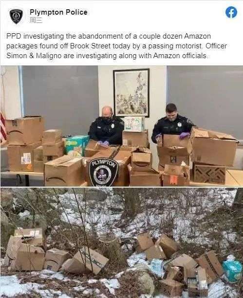 比如今年2月,美国马萨诸塞州,就出现了一起20个包裹被扔在森林的案件,20个包裹里有家庭用品、食品、玩具和其他物品。其中超过半数的包裹都被盗窃,当地警局甚至为此还在Facebook上发了一则帖子。