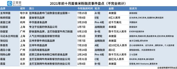 3、地域特色品牌备受追捧:2021年面食米粉融资事件超12起