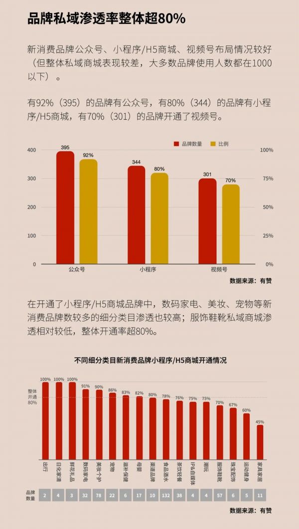 这次,观潮研究院推出《2021新消费品牌私域营销报告》,力图以433个公开收集的优秀新消费品牌为样本,揭开这些已崭露头角的新消费品牌在私域营销领域的图景一角,从他们的成长与成绩中获得启发。