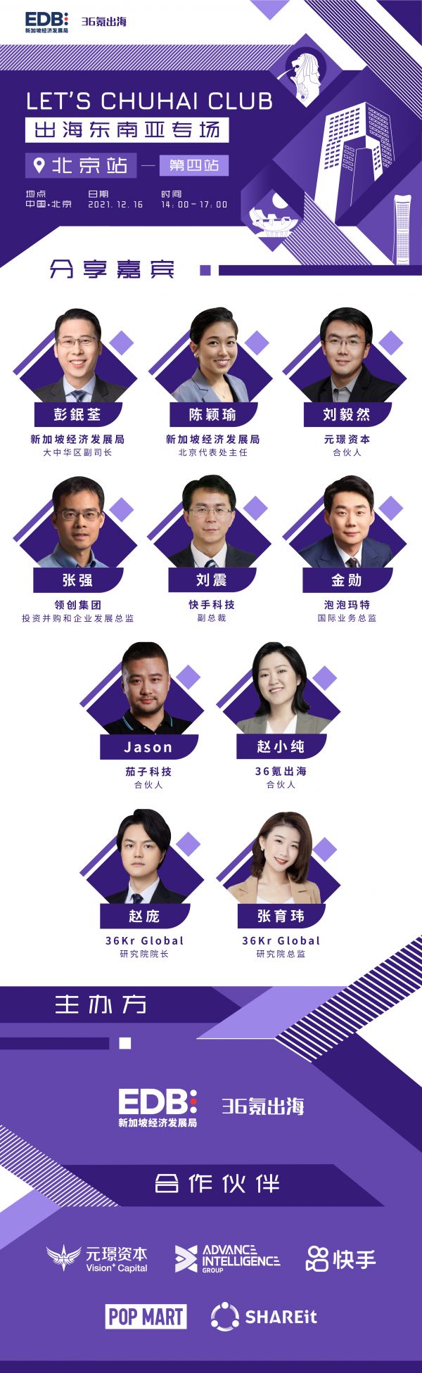 由新加坡经济发展局(经发局 EDB)与36氪出海联合主办的“LET'S CHUHAI CLUB-出海东南亚系列沙龙” ,将于12月16日将来到北京。作为出海东南亚系列沙龙的最后一站,我们希望为有志于出海东南亚的企业提供有价值的交流平台。本次活动将围绕企服公司在东南亚市场策略、跨国企业如何突破文化壁垒等热门话题展开交流与分享,共同探讨企业出海东南的商业机遇与挑战,打造出下一代全球化企业。