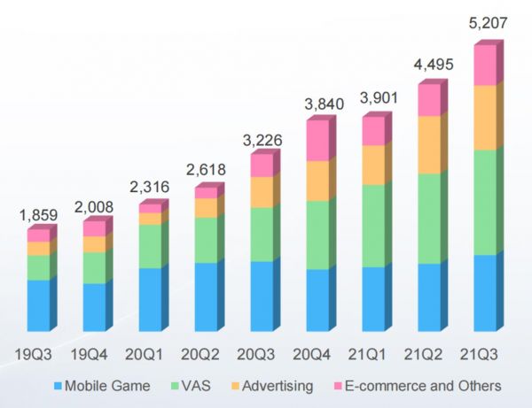 增值服务主要包括大会员、直播互动及其他服务。上季度,这块业务的营收达到19.1亿元,同比增长95%;营收占比进一步提升至36.7%。
