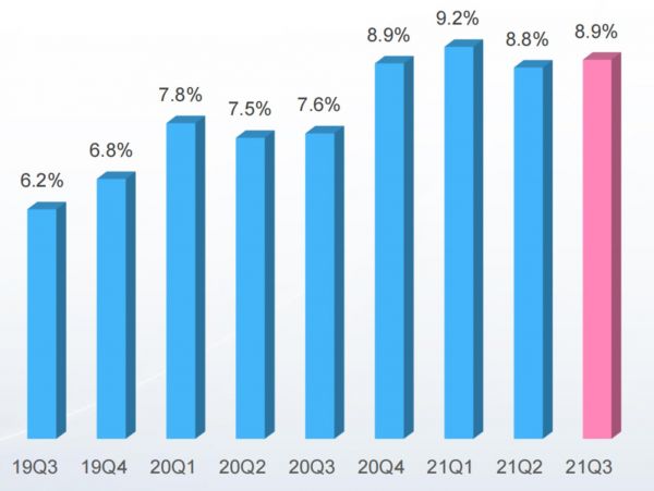 相比之下,上季度B站付费用户占比为8.9%,只比第二季度提升0.1个百分点,相比去年第三季度的7.5%也增长有限。