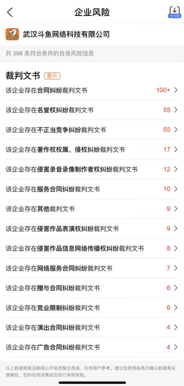 斗鱼涉及多个侵权纠纷(图源:爱企查)