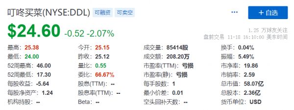 凭借着地理优势和更注重蔬菜供应的经营模式,以及疫情等原因,历经四年的叮咚买菜获得了爆发式增长。在今年6月宣布完成了3.3亿美元D+轮融资后,同月29日,叮咚买菜正式登陆了纽交所,发行价23.5美元,11.19日为24.6美元。
