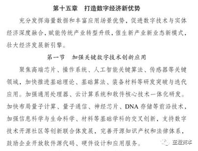 2021年3月12日,新华社受权全文播发《中华人民共和国国民经济和社会发展第十四个五年规划和2035年远景目标纲要》。「开源」首次被明确列入国民经济和社会发展五年规划纲要,相关内容摘录如下: