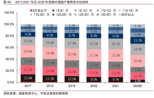 2020年,我国有56.5%的乘用车车主在此区间消费,如加上15-20万市场,整个占比可达70%,而15-20万也被市场视为下一个实现渗透率高增长的核心区间,真正的竞争将始于那时。