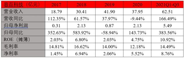 2021年前三季度容百科技表现亮眼,实现营业收入62.51亿元,同比增加166.50%;归母净利润5.49亿元,同比增加383.56%,ROE(摊薄)较2020年有较大幅度增长,毛利率与净利率均有所增长,公司盈利能力有所增长。