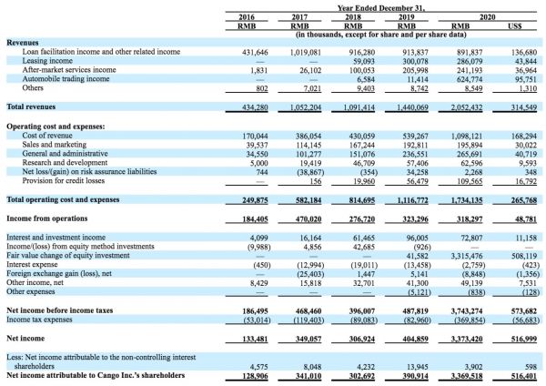 其中,灿谷2021年第三季度的车交易服务业务收入为4.29亿元(6661万美元),占总收入比53.6%,汽车贷款促成业务收入为2.67亿元(4136万美元),较2020年同期的2.30亿元增长15.8%。